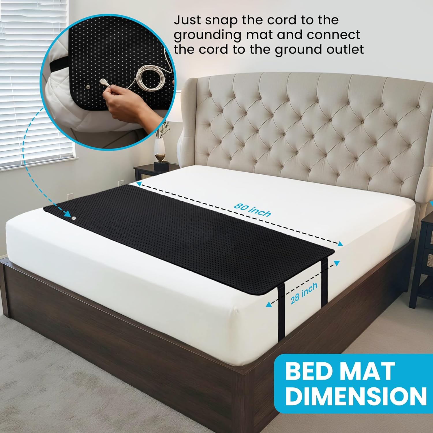 • Full-Size Versatility for Any Bed Setup – Designed to work with a variety of bedding, including king size sheets, queen fitted sheets, twin XL mattresses, bamboo cooling sheets, and cotton bed sheets. This grounding mat integrates seamlessly into your existing sleep essentials for a more balanced and restorative sleep environment.